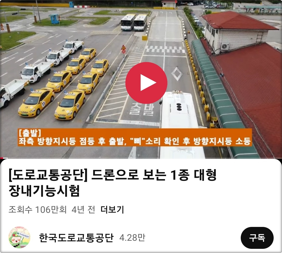 다행히 "한국도로교통공단"에서는 이 대형면허 기능시험 과정을 드론으로 촬영한 공식영상을 직접 제공하고 있어요.