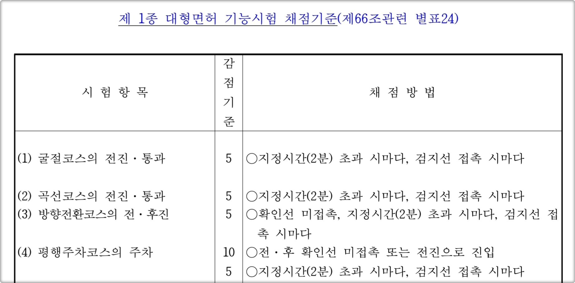🔻1종대형 기능시험 감정 및 채점기준🔻
