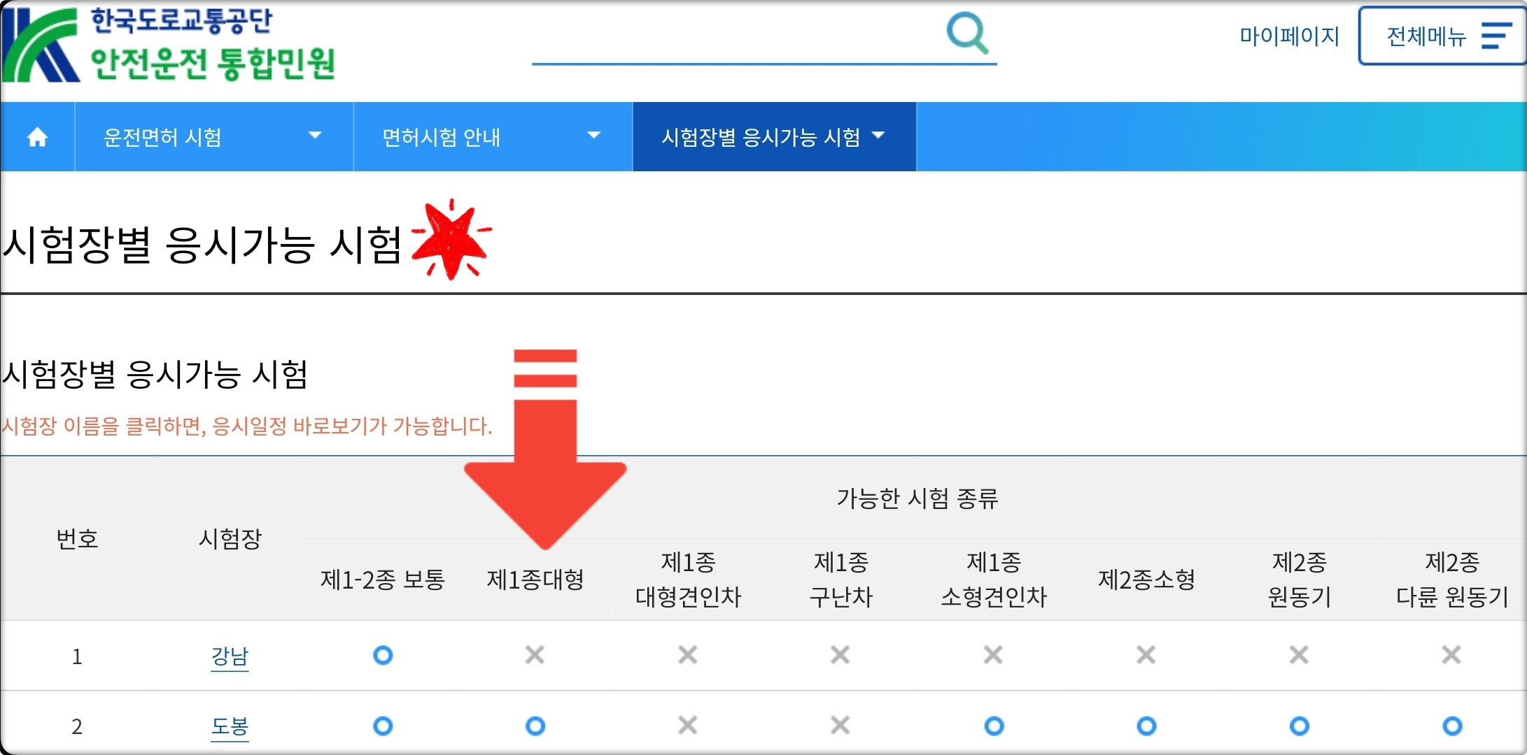 특히 서울 강남, 강서 지역 면허시험장처럼 수요가 많은 곳임에도 대형면허 시험이 불가능한 시험장이 있어요.