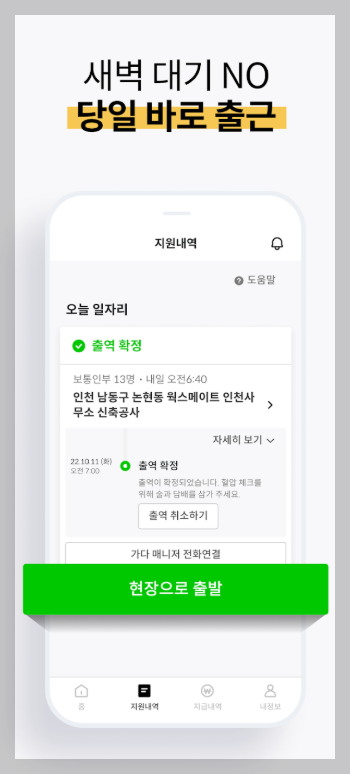 - 당일 바로 출근, 새벽 대기 없음