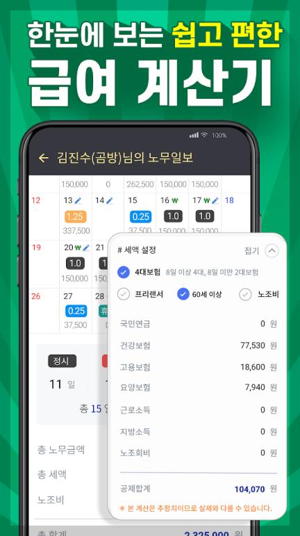 따라서 일다오 노가다 어플은 일용직 일정과 급여를 정확히 관리할 수 있는데요.