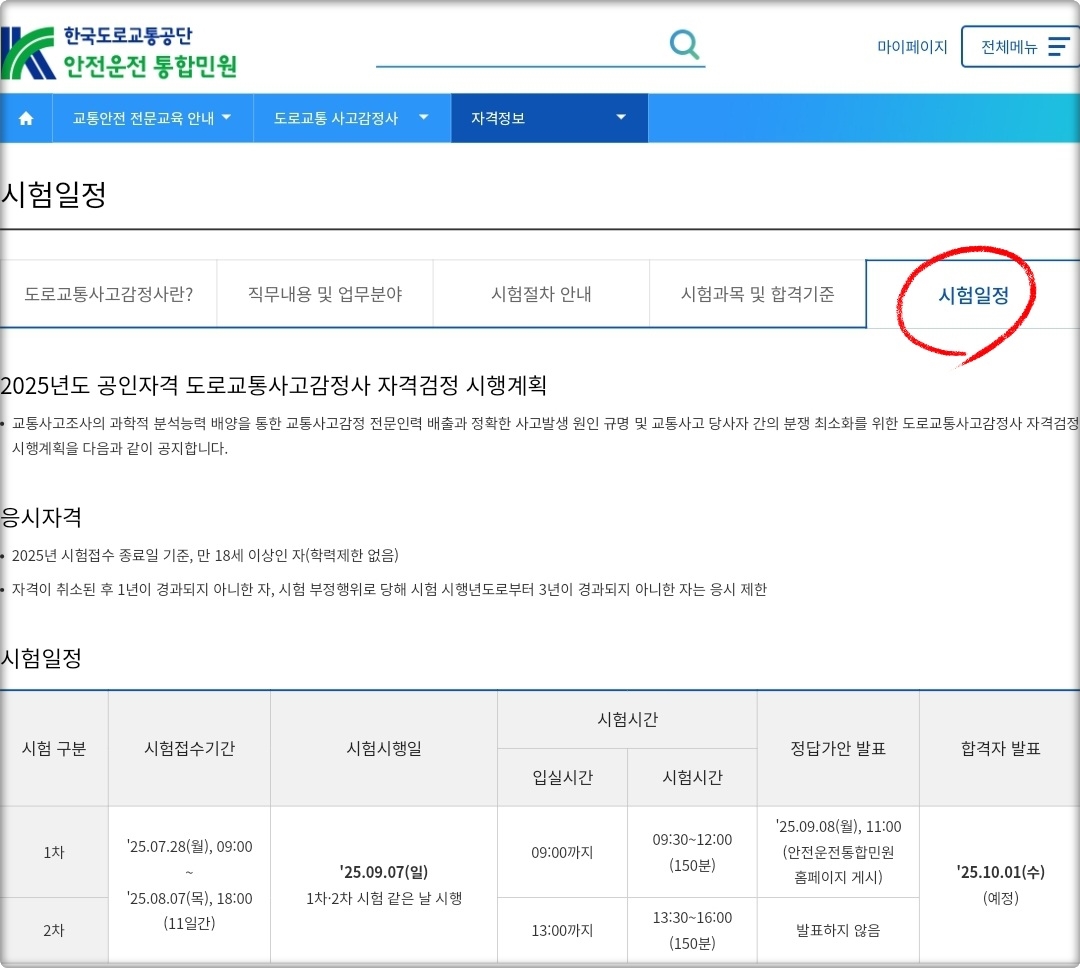 도로교통사고 감정사 자격시험은 일년에 한 번밖에 치러지지 않기 때문에, 시험일정과 접수기간을 잘 챙겨두는 게 중요합니다.