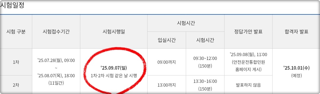 올해 시험일은 2025년 9월 7일(일요일)로 시험은 1차와 2차가 같은 날 진행되는데요.