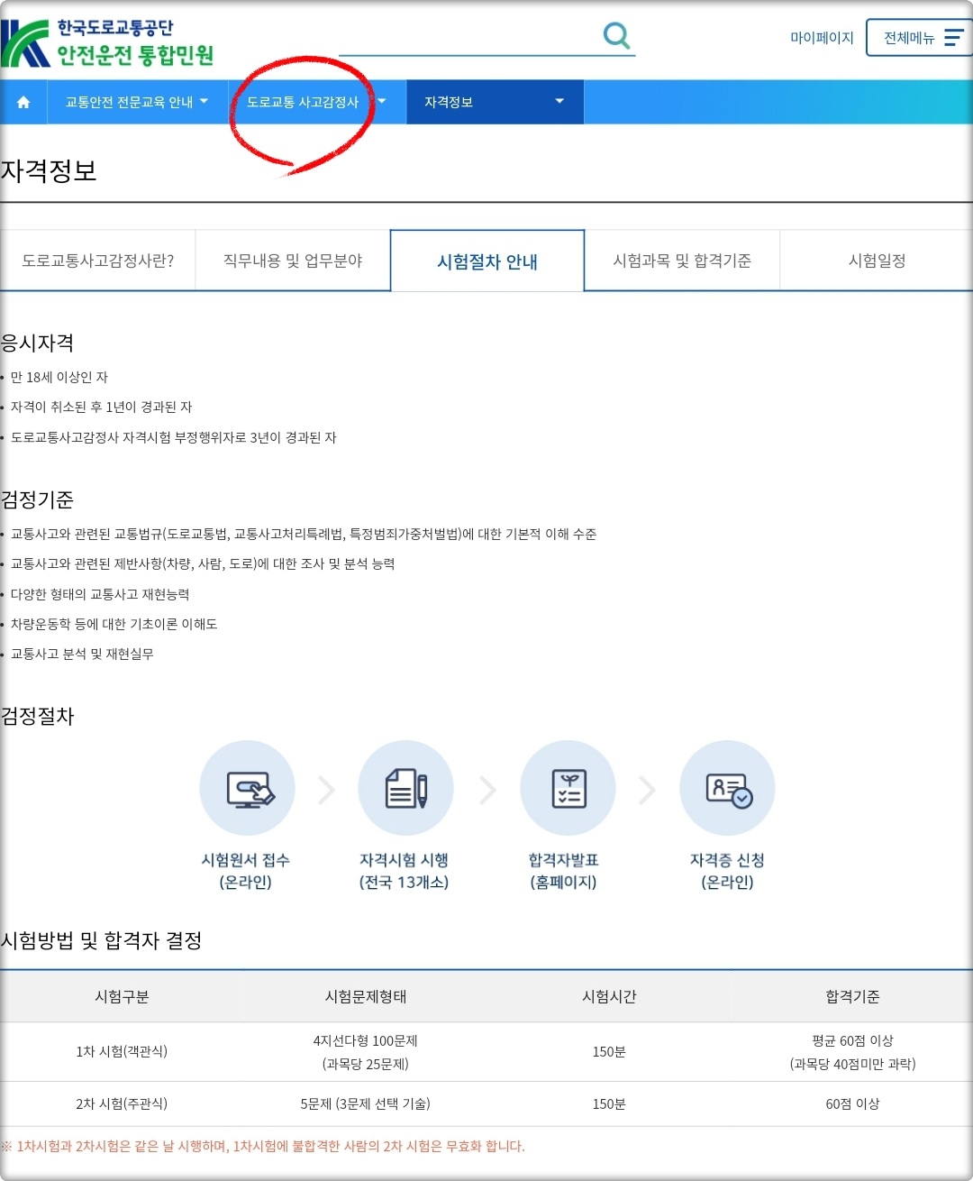 도로교통사고 감정사 자격시험접수, 일정, 시험과목 안내 또한 주관하고 있습니다.