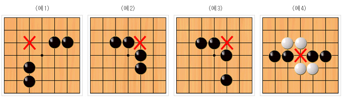 이 규칙은 일부 위치에 돌을 놓지 못하게 막는 것으로, 주로 흑돌에게만 해당돼요.