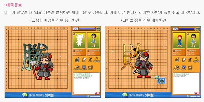 이때 start 버튼을 누르면 곧바로 재대국도 가능해요. 이전 판에서 진 쪽이 흑돌을 들고 다시 시작하게 됩니다.