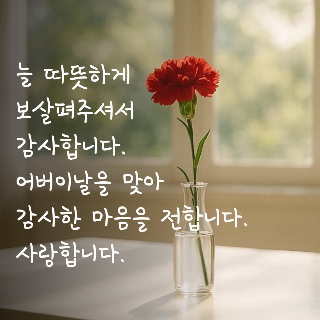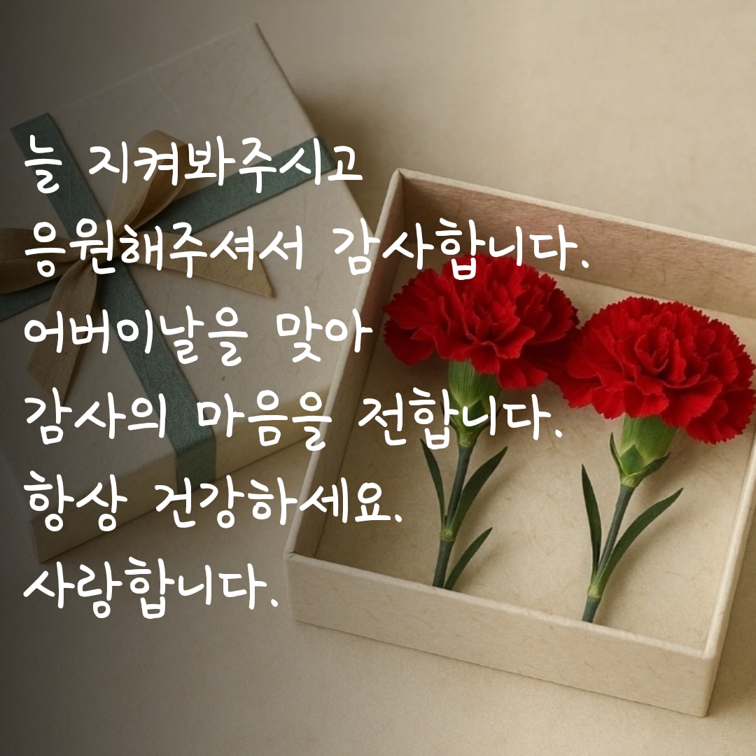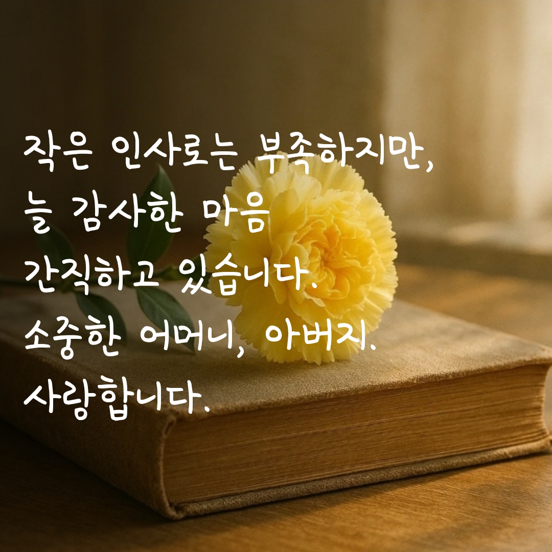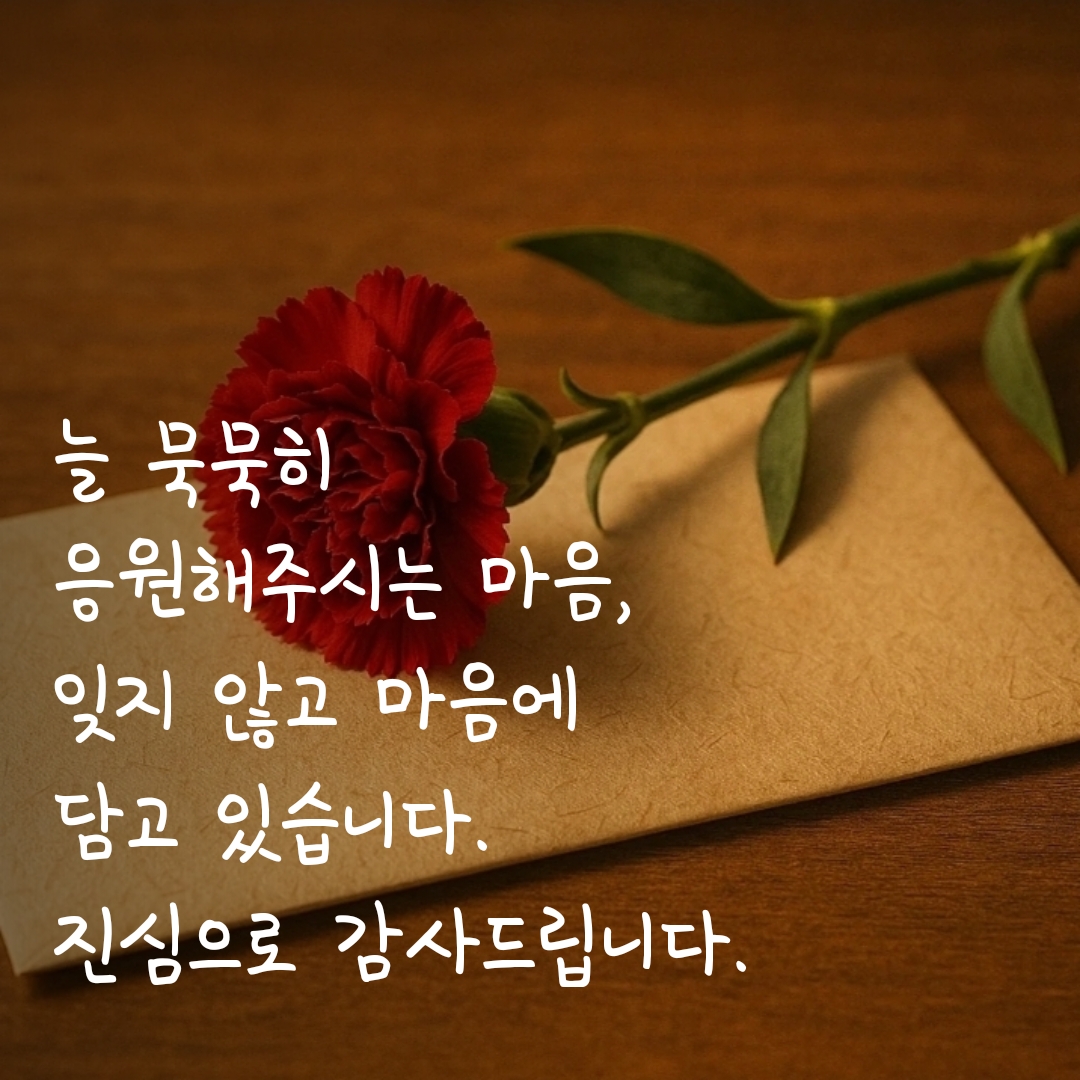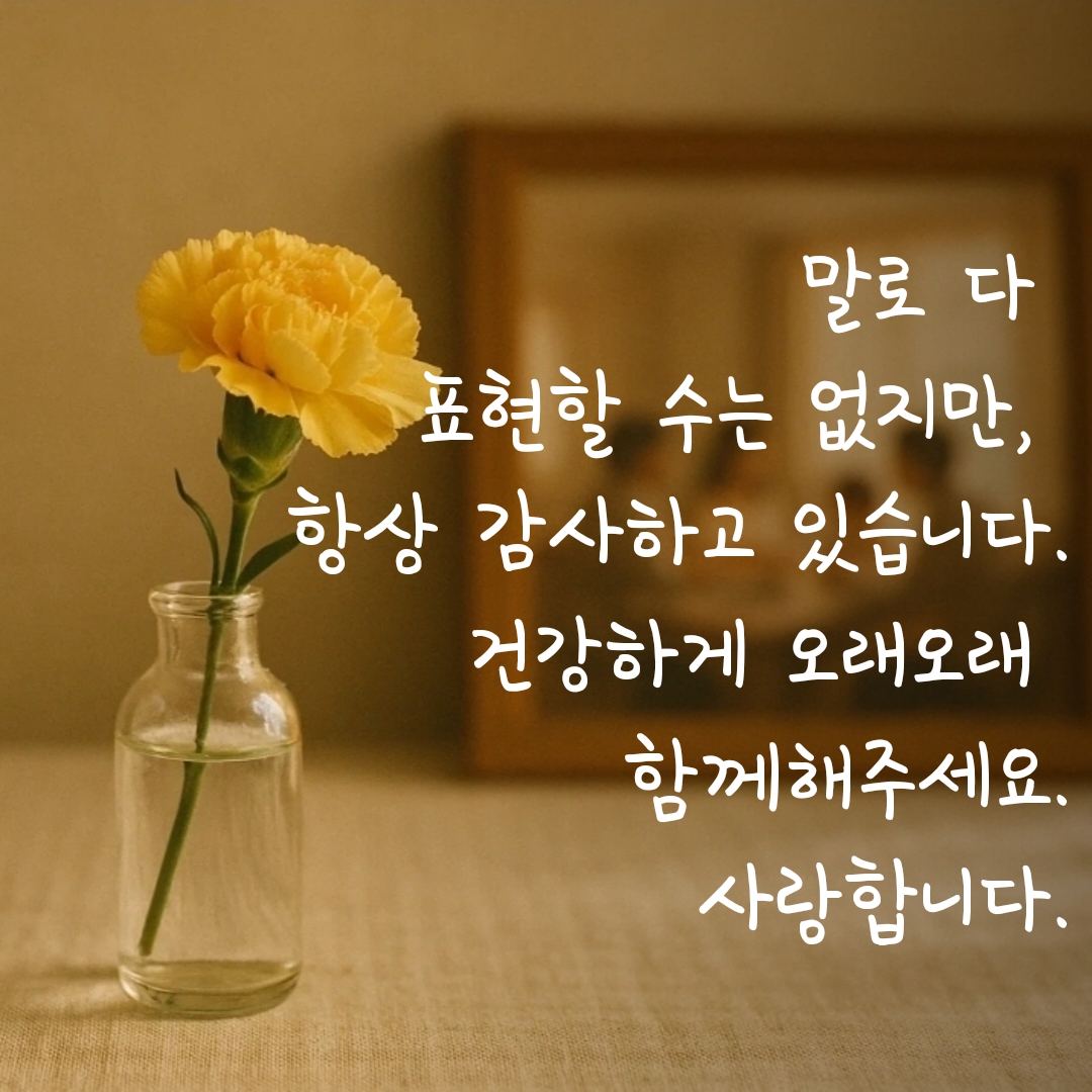 거창하지 않아도, 짧은 문장 하나로 충분히 전해질 수 있으니 오늘만큼은 따뜻한 한마디로 감사의 마음을 건네보세요.