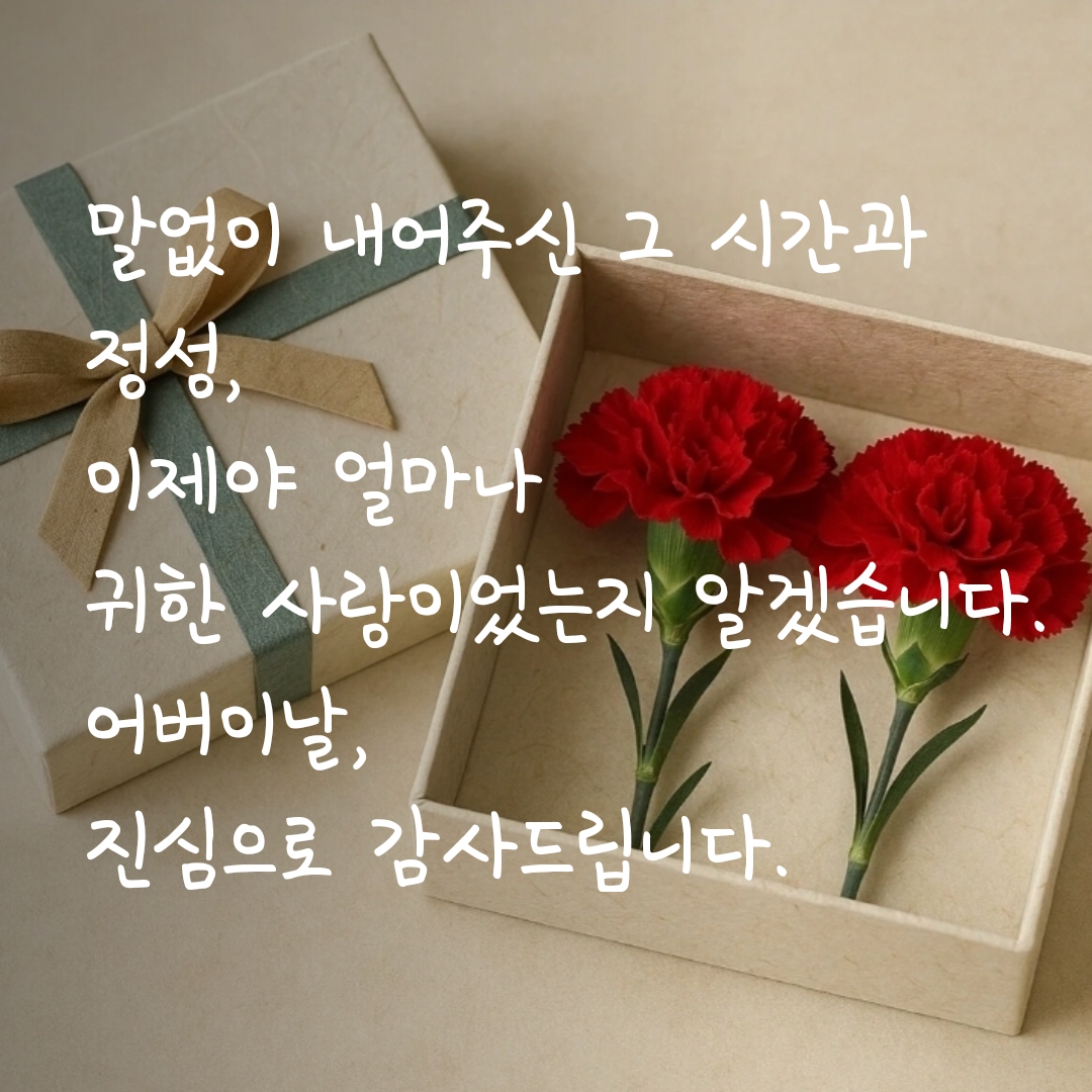 작은 정성이라도 그 안에 진심이 담겨 있다면, 부모님은 충분히 행복해하실 거라 생각해요.
