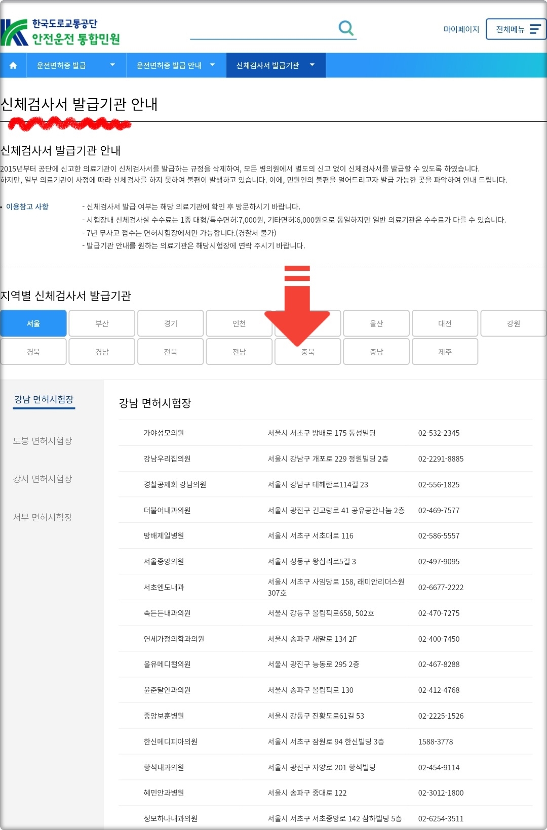 이럴 땐 한국도로교통공단에서 공개한 신체검사서 발급 병원목록을 확인해보는 게 가장 정확해요.