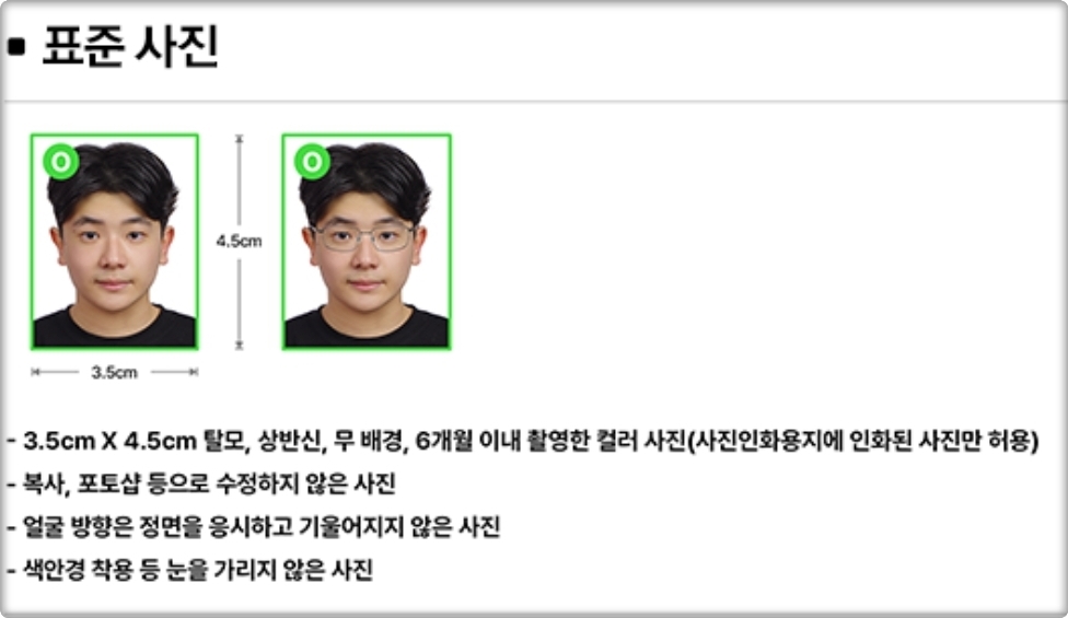 사진은 최근 6개월 이내 촬영한, 3.5×4.5cm 사이즈로 준비하시면 돼요.